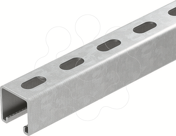 Perfis C, grandes cargas, para instalação individual de estruturas de suporte para, por exemplo, caminhos de cabos em chapa ou como consola para quadros elétricos. Também indicados para instalação de cabos em combinação com abraçadeiras BBS de tipo U.