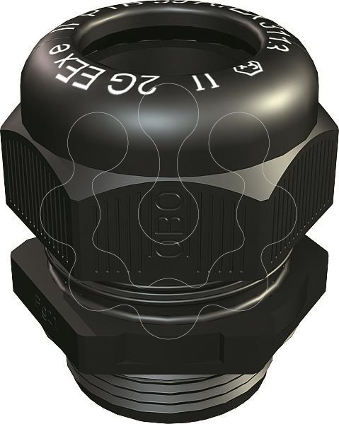 Bucim com certificado CE para aparelhos e sistemas de proteção, para uma utilização correta em zonas potencialmente explosivas. Diretiva 94/9/CE Número do certificado CE de tipo: PTB 99 ATEX 3112X e ... 3113X. Com rosca PG conforme a IEC 423. Para uma elevada capacidade de vedação são exigidos bucins robustos com porca e de grande capacidade de vedação, assim como alívio de tensão e proteção contra torção. Anel de vedação em borracha de cloropreno/nitrílica, nervuras de vedação lubrificadas, não sendo necessário um anel de vedação para roscas de ligação, testado pela VDE Grau de proteção IP 68 com 5 bar.