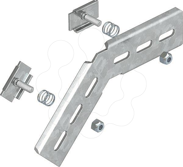 Perfil de montagem a 45°, vertical, para caminho de cabos em varão C e GR-Magic com 55 mm de altura lateral.