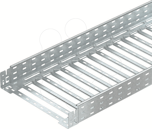 Caminho de cabos em chapa com união de encaixe rápido integrada. O comprimento útil do caminho de cabos em chapa é de 3.000 mm. O caminho de cabos possui uma perfuração lateral contínua de 7 x 20 mm para a instalação de componentes adicionais de ligação e montagem. A partir da largura de caminhos de cabos em chapa de 200 mm com 30% de perfuração, conforme a diretiva VdS 2092, adequados para aplicação por baixo de sistemas de pulverizadores.