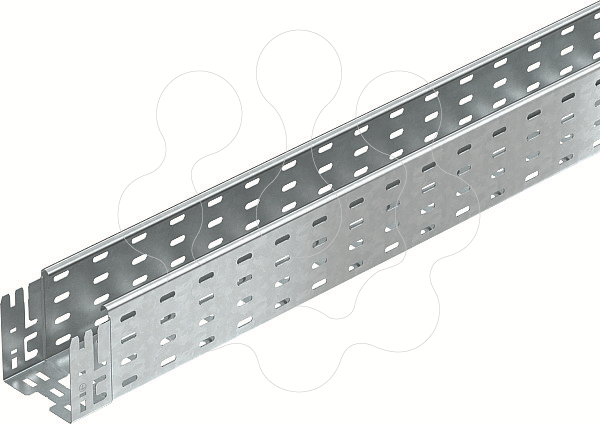 Caminho de cabos em chapa com união de encaixe rápido integrada. O comprimento útil do caminho de cabos em chapa é de 3.000 mm. O caminho de cabos possui uma perfuração lateral contínua de 7 x 20 mm para a instalação de componentes adicionais de ligação e montagem. A partir da largura de caminhos de cabos em chapa de 200 mm com 30% de perfuração, conforme a diretiva VdS 2092, adequados para aplicação por baixo de sistemas de pulverizadores.