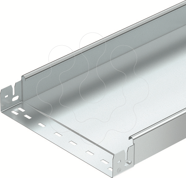 Caminho de cabos em chapa não perfurado com união de encaixe rápido integrada. O comprimento útil do caminho de cabos em chapa é de 3.000 mm.
