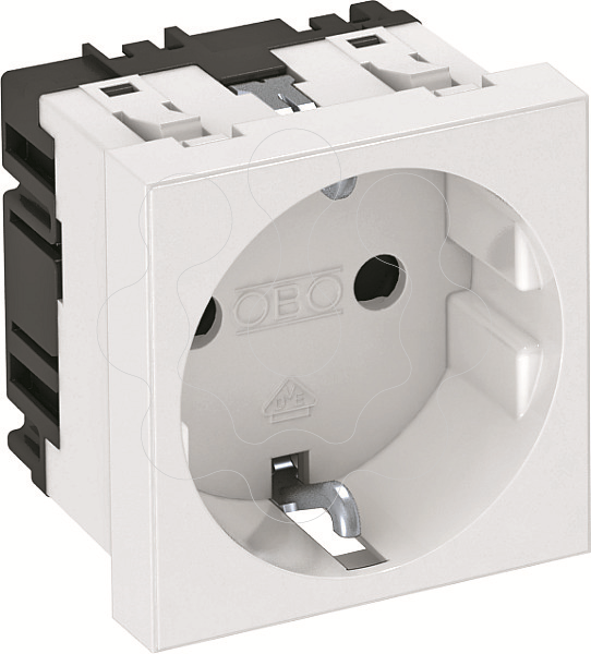 Tomada de contacto de segurança 1 módulo 0°, com elevada proteção contra contacto, com ligadores rápidos, 2 polos, 16 A, 250 V~, com bornes de ligação em conformidade com a IEC 60884-1.