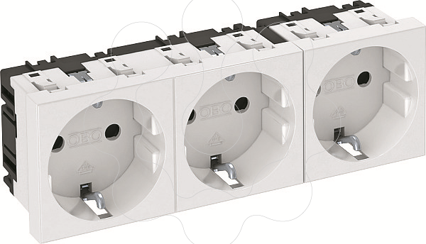 Tomada de contacto de segurança 3 x 0°, com elevada proteção contra contacto, com ligadores rápidos, 2 polos, 16 A, 250 V~, com bornes de ligação em conformidade com a IEC 60884-1.