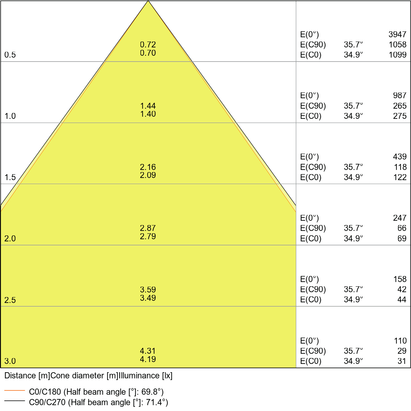 | Vida útil nominal L70/B50 a 25° C | 50000h |
