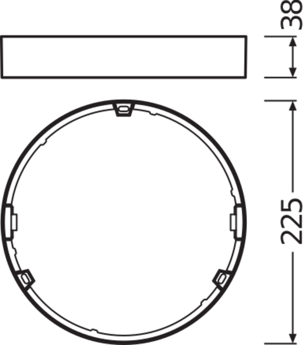 DOWNLIGHT SLIM ROUND FRAME 210 WT. Moldura de montagem saliente, redonda. Características do Produto: Baixa profundidade de montagem. Estojo em policarbonato resistente. Acessórios de montagem incluídos. Vantagens do Produto: Entrada do cabo na lateral da ligação elétrica com baixo perfil. Fácil instalação graças ao modelo de furação incluído. Áreas de Aplicação: Iluminação em geral. Áreas públicas. Escadarias. Corredores. Foyers. Lojas.. Moldura de montagem saliente, redonda | Baixa profundidade de montagem | Comprimento (incl.luminárias redondas): 225 mm | Altura (incl.luminárias cilind.): 38 mm | Largura (incl.luminárias redondas): 225 mm | Garantia: 2 anos