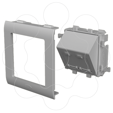 Placa inclinada RJ45 65mm Unex em U24X. Para instalar conectores RJ45. Compatível com universais tipo Keystone (AMP, Krone, Nexans, Jetlan, Belden, Brand-Rex e Openet-ICS). Cor: Alumínio Material isolante. facilidade de instalação. proteção contra danos mecânicos grau IK07.