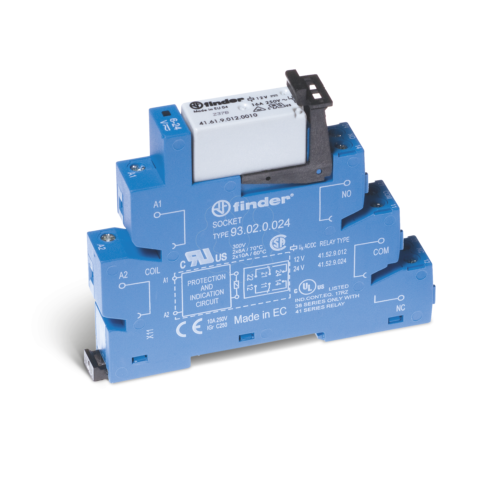 Relé modular de interface EMR Corrente nominal: 16 A. Nr.contato: 1 Reversível Material dos contatos: AgNi Acabamento da conexão elétrica: Terminal de parafuso Tipo de tensão para atuação: DC Tensão de alimentação de corrente nominal DC: 24 V. Acionador, polarização: Polaridade livre Acionador/comutação do inversor: Mono estável Grau de proteção (IP): IP20 Com indicação LED: sim acessórios: Pente de 8 polos,Separador plástico