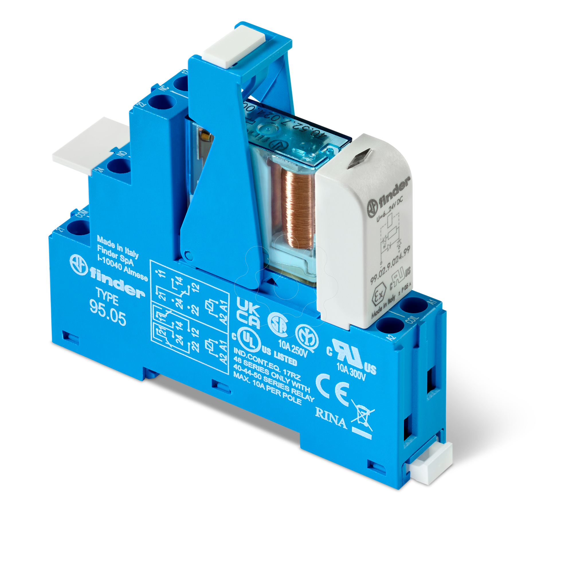 Relé modular de interface Corrente nominal: 8 A. Nr.contato: 2 Reversível Material dos contatos: AgNi Acabamento da conexão elétrica: Terminal de parafuso Tipo de tensão para atuação: DC Tensão de alimentação de corrente nominal DC: 24 V. Acionador, polarização: Polarizado Acionador/comutação do inversor: Mono estável Grau de proteção (IP): IP20 Com indicação LED: sim opcional: Green LED+diode