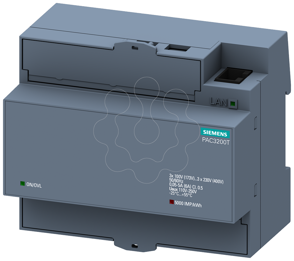 SENTRON instrumento de medição 7KM PAC3200T, trilho DIN, 400/230 V, 5 A, 110-250 V CA/CC, Modbus TCP, sem display
