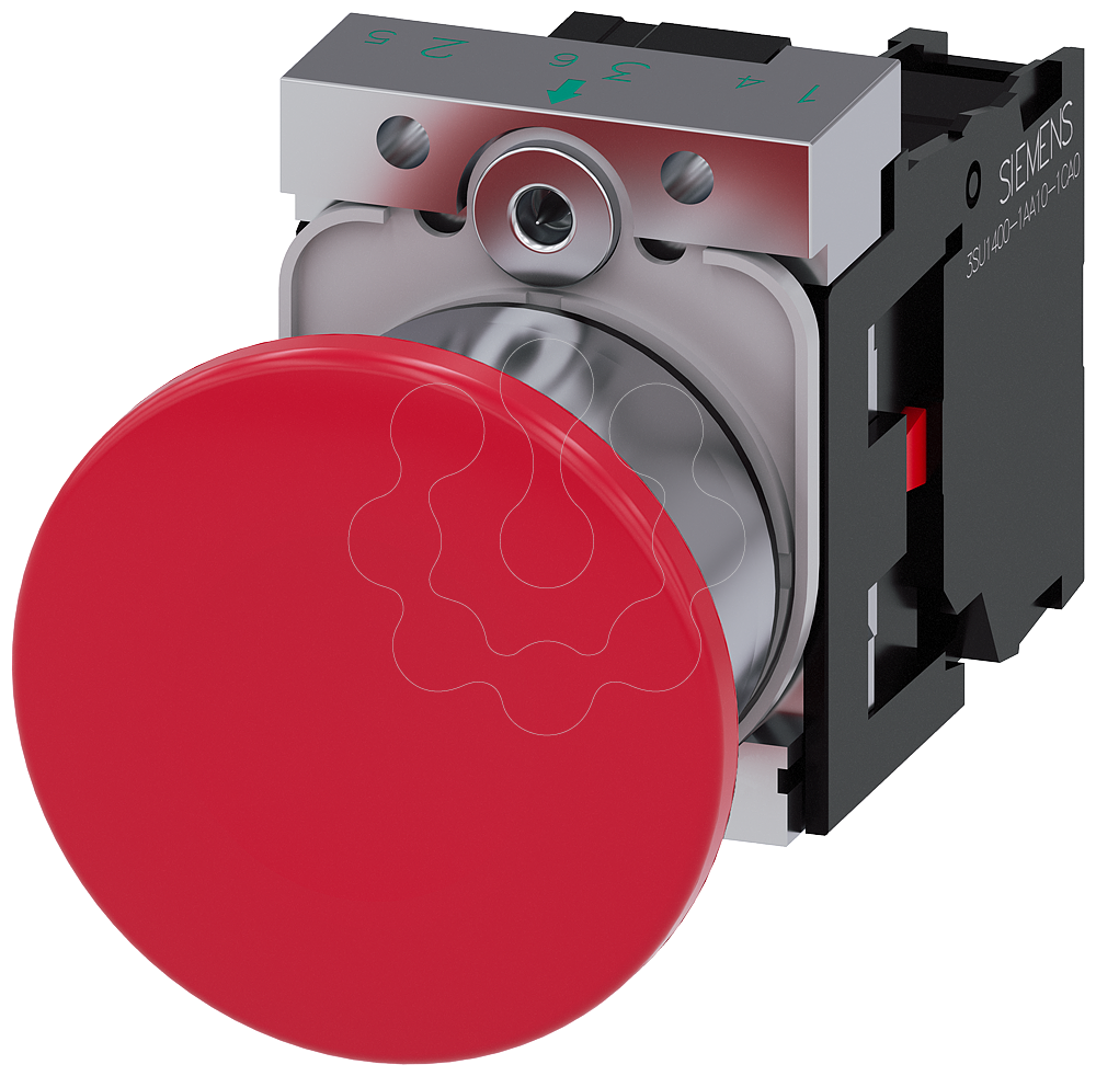 botão tipo cogumelo, 22 mm, redondo, metal, de alto brilho, vermelho, 40 mm, de encaixe, desbloqueio puxando, com suporte, 1NF, conexão parafusada,...