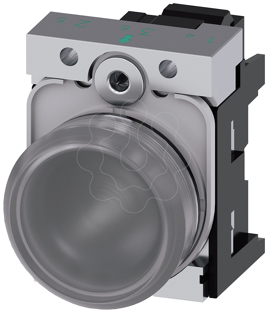 indicador luminoso, 22 mm, redondo, metal, de alto brilho, transparente, lente, plano, com suporte, módulo LED com LED integrado 230 V CA, conexão ...