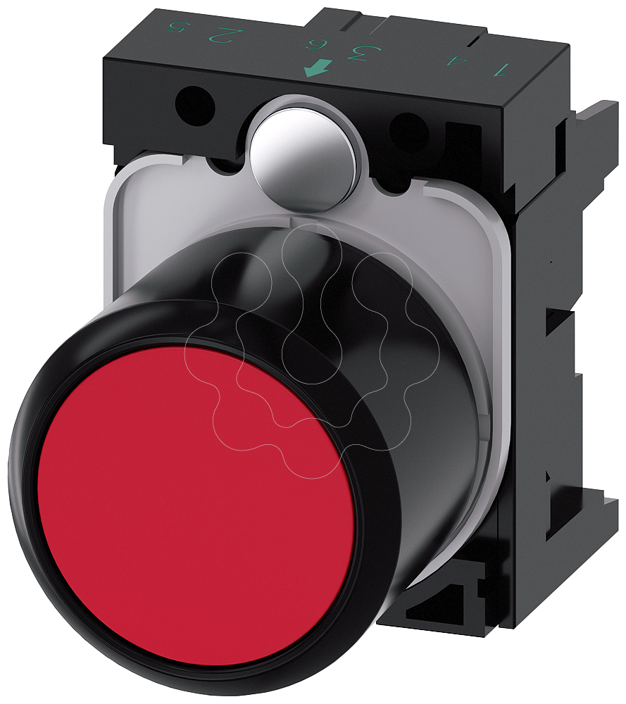 botão, compacto, com curso prolongado (12 mm), 22 mm, redondo, plástico, vermelho, botão de pressão, plano, tecla com retorno, com suporte, com ins...