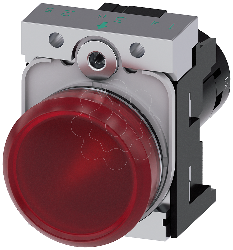 indicador luminoso, compacto, 22 mm, redondo, metal, vermelho, lente, plano, com suporte, tensão operacional CA/24 V CC, conexão parafusada, com in...