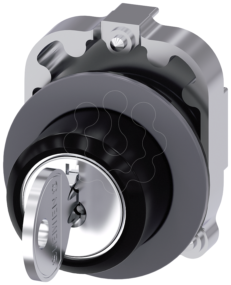 Interruptor de chave RONIS, 30mm, redondo, metal, fosco, retirada da chave I+O+II