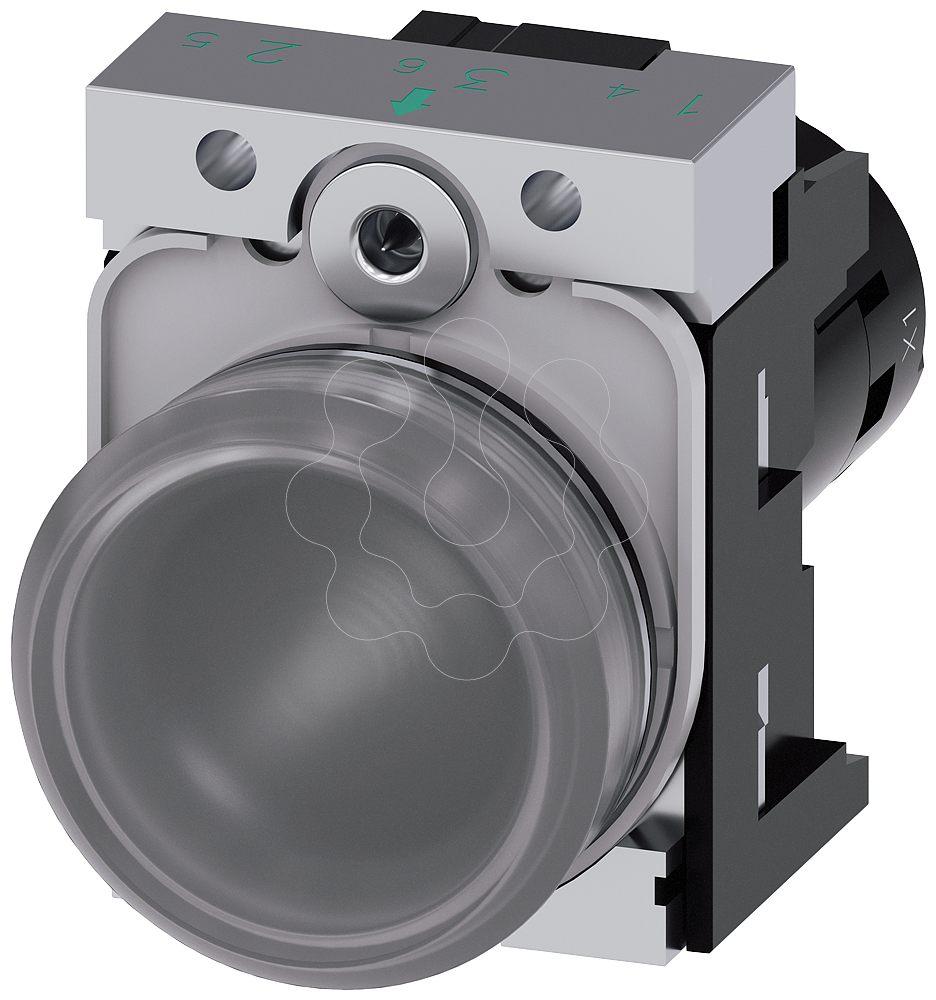 Sinalizador luminoso, 22mm, redondo, metal, alto brilho, transparente, lente, plano, 230V CA