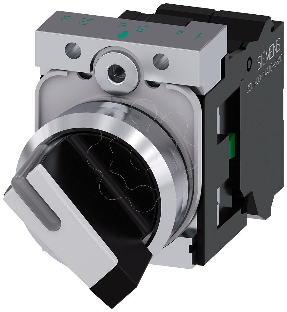 Interruptor com manípulo, iluminável, 22mm, redondo, metal, alto brilho, branco, 1NA+1NF