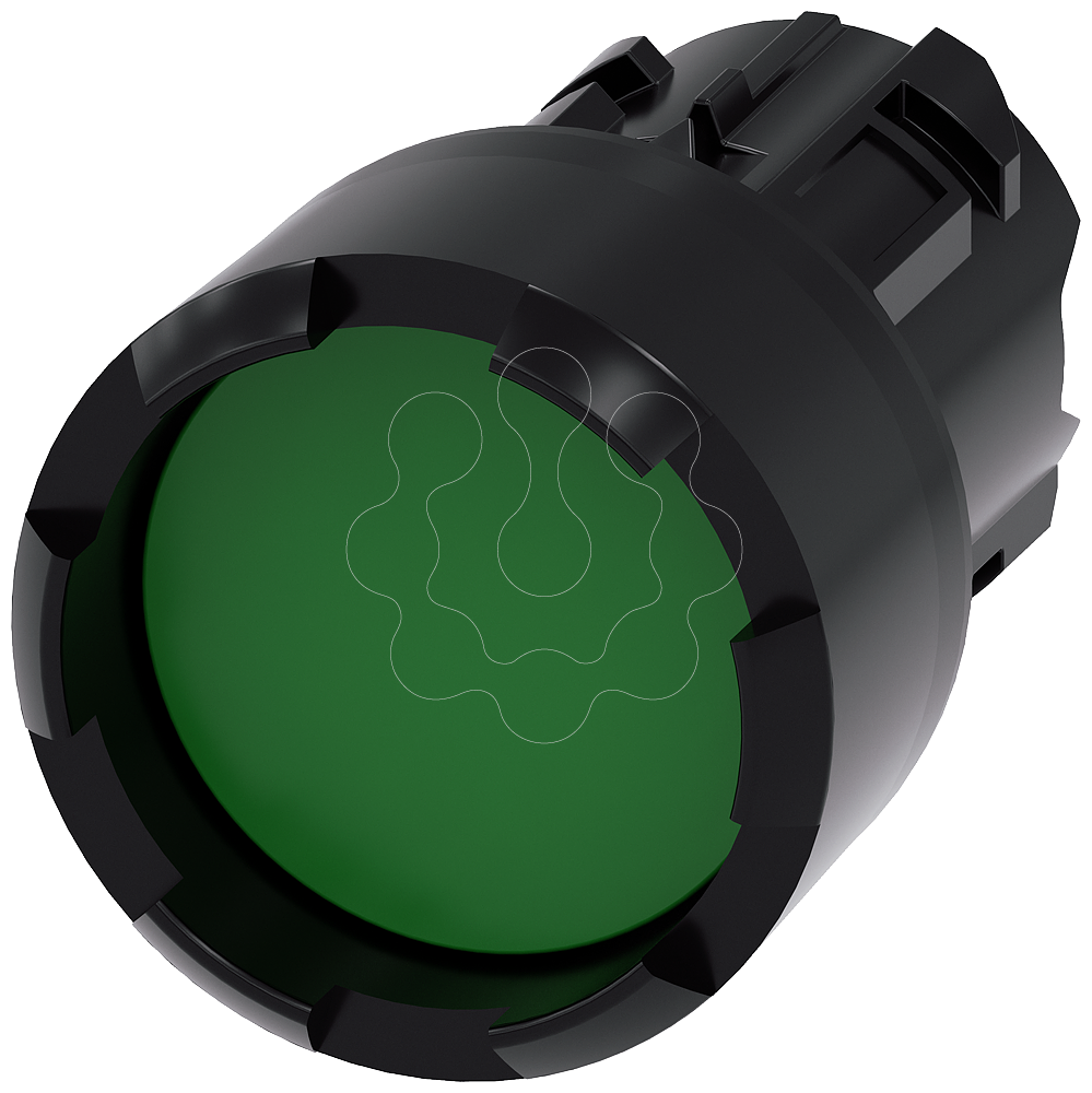 Botão de pressão, 22mm, redondo plástico, verde, anel frontal