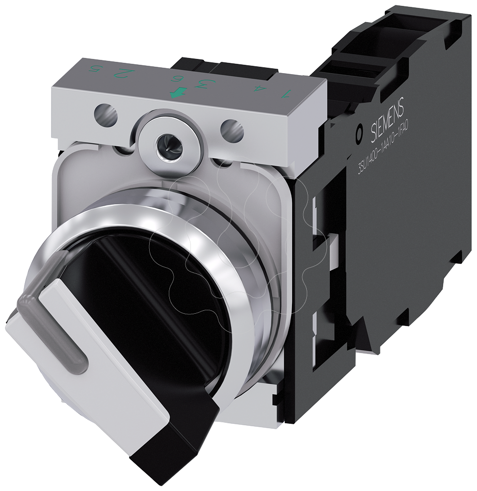 Interruptor com manípulo, iluminável, 22mm, redondo, metal, alto brilho, branco, 1NA+1NF