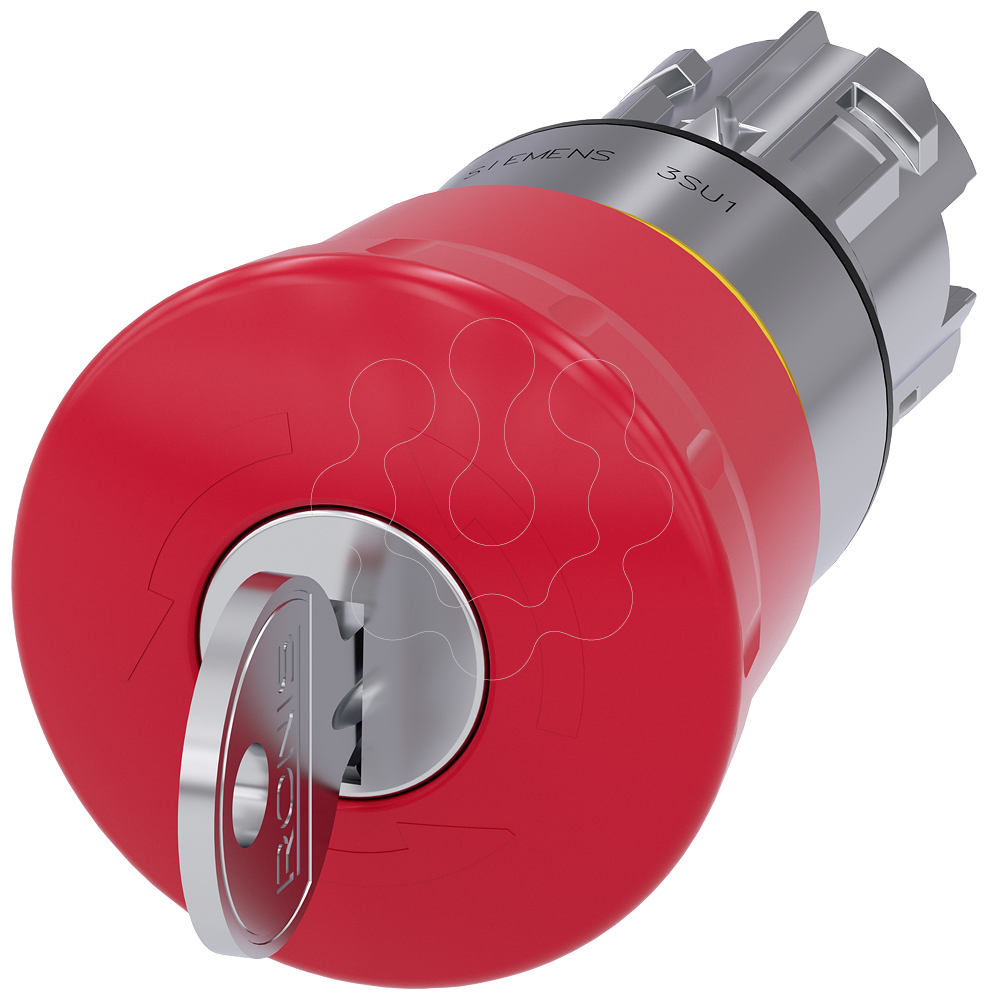 Botão cogumelo de paragem de emergência, 22mm, redondo, metal, brilhante, vermelho, com fechadura RONIS
