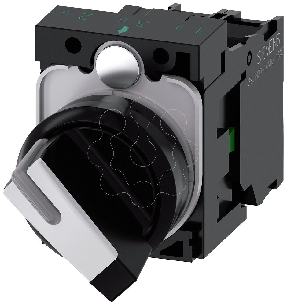 interruptor com manípulo, iluminável, 22 mm, redondo, plástico, branco, manípulo, curto, 2 posições de comutação O-I, de encaixe, 10:30h/13:30h, co...