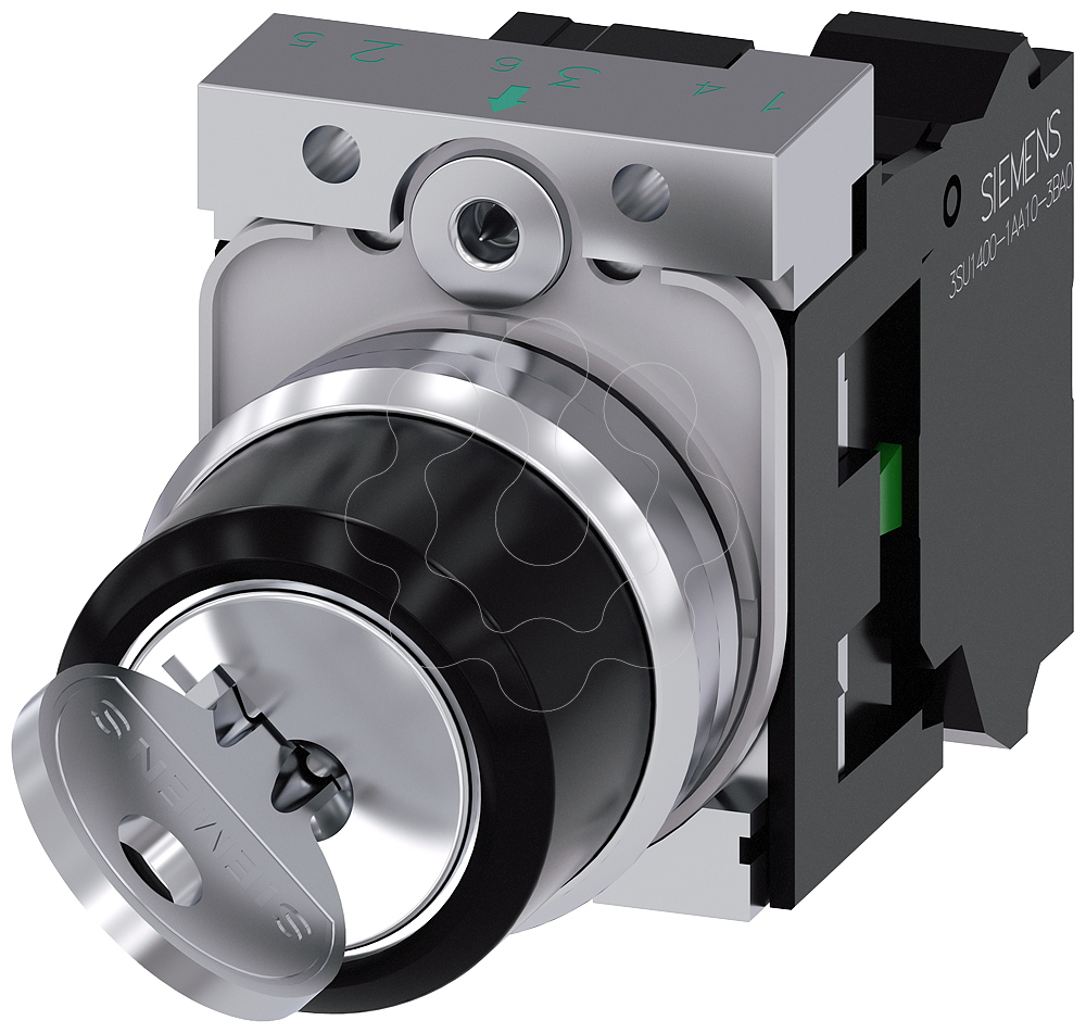 Interruptor de chave RONIS, 22mm, redondo, metal, alto brilho, retirada da chave O+I