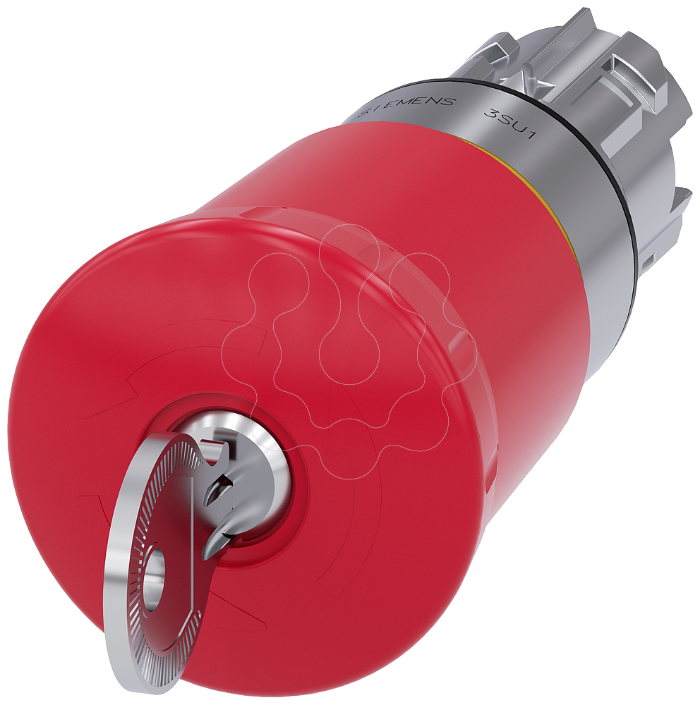 Botão cogumelo paragem emergência, 22 mm, redondo, metal, vermelho, 40 mm, com fechadura Siemens, B