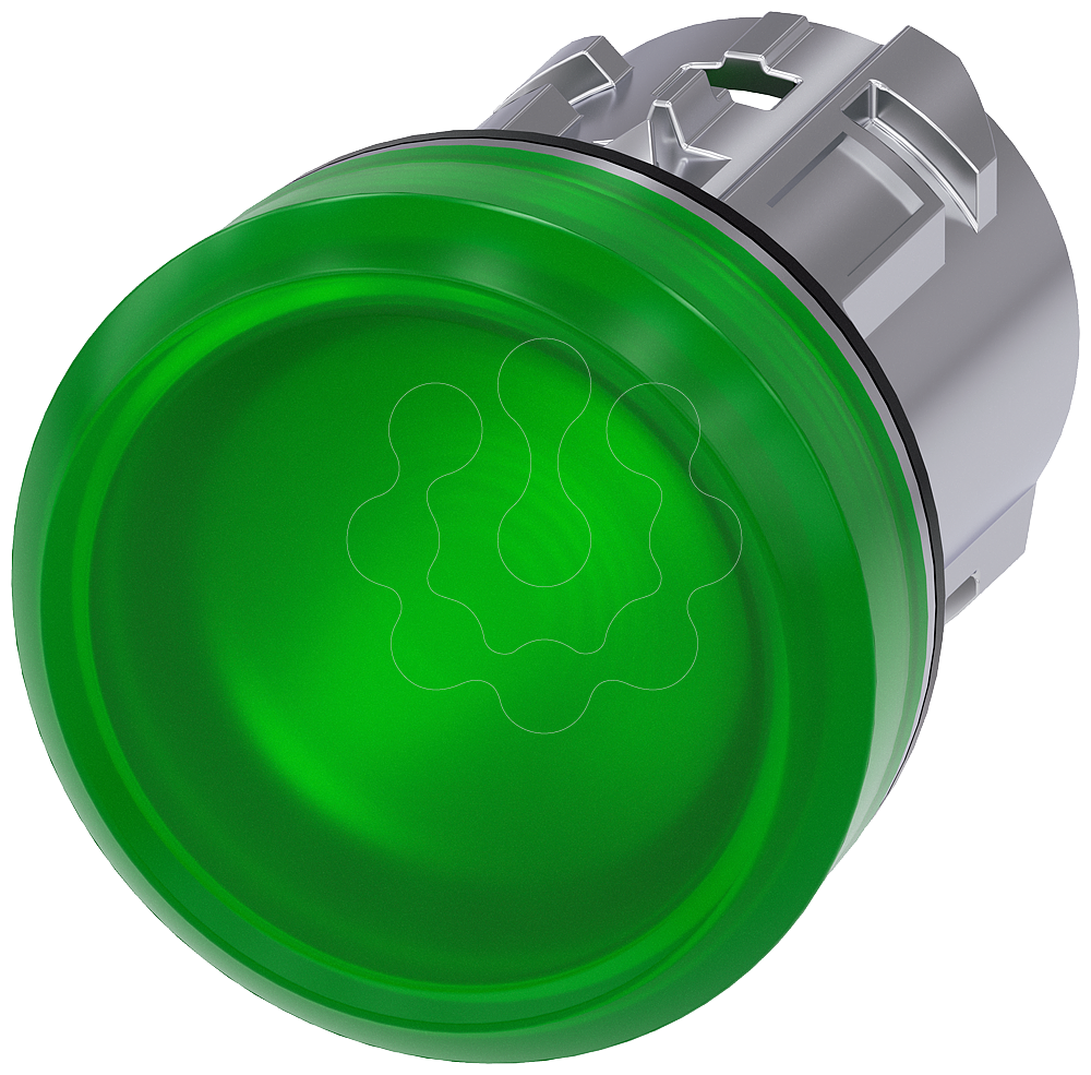 indicador luminoso, 22 mm, redondo, metal, de alto brilho, verde, lente, plano, com inscrição a laser, inscrição ou símbolo seleção específica do c...