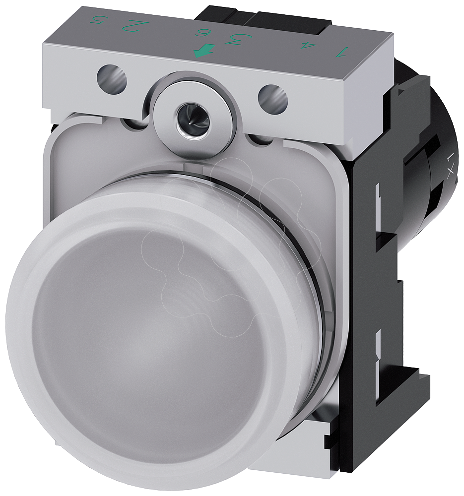Sinalizador luminoso, 22mm, redondo, metal, alto brilho, branco, lente, plano, 24V CA/CC