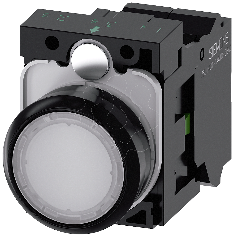 Botão de pressão, iluminado, 22mm, redondo, plástico, branco, 1NA, 24V CA/CC