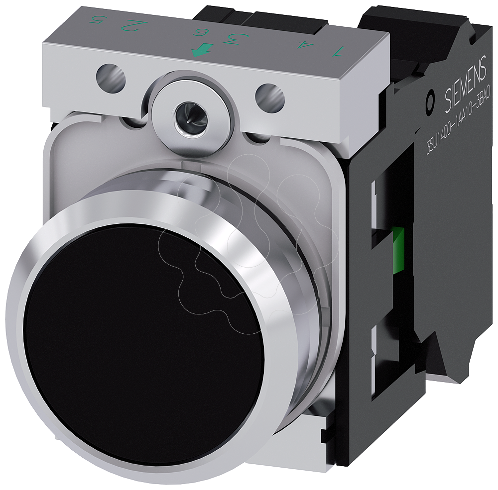 Botão de pressão, 22mm, redondo, metal, alto brilho, preto, 1NA