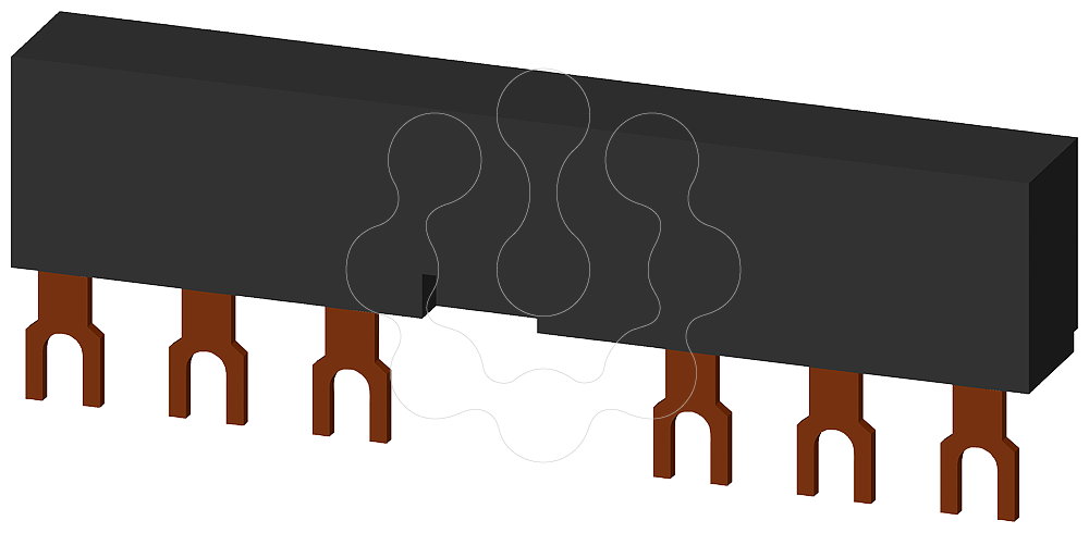 Barramento trifásico distância de separação 63mm para 2 interruptores, conexões em forma de garfo