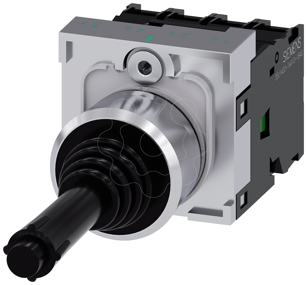 comutador de coordenadas, 22 mm, redondo, metal de alto brilho, preto, 4 posições de comutação, tecla com retorno, com travamento mecânico, na posi...