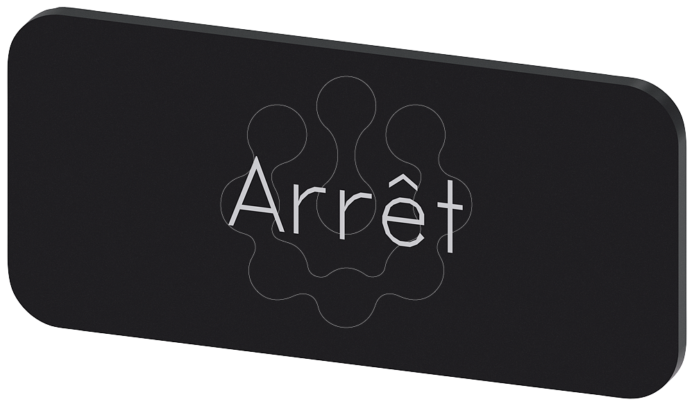 Placa de identificação 12,5x27mm, placa preto, inscrição: Arret