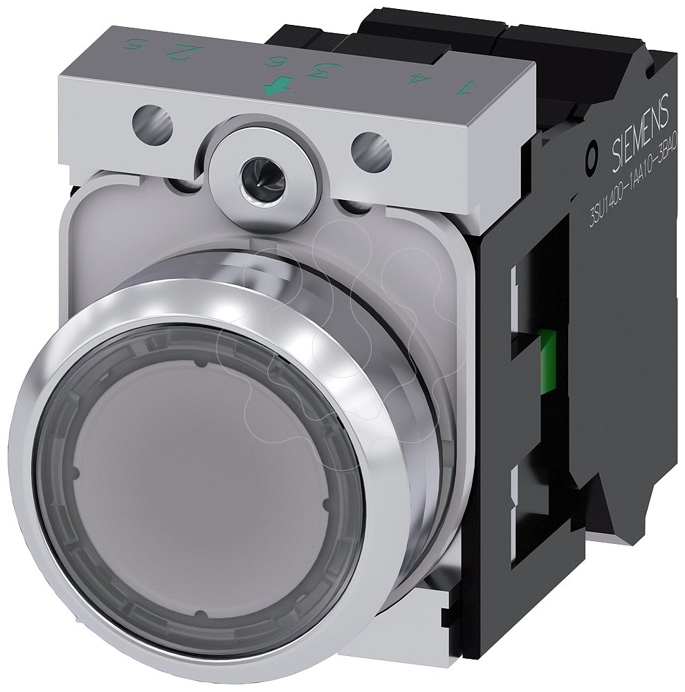 botão iluminado, 22 mm, redondo, metal, de alto brilho, transparente, botão de pressão, plano, tecla com retorno, com suporte, 1NA, módulo LED com ...