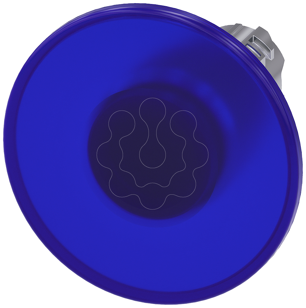 Botão cogumelo, iluminado, 22mm, redondo, metal, brilhante, azul, 60mm