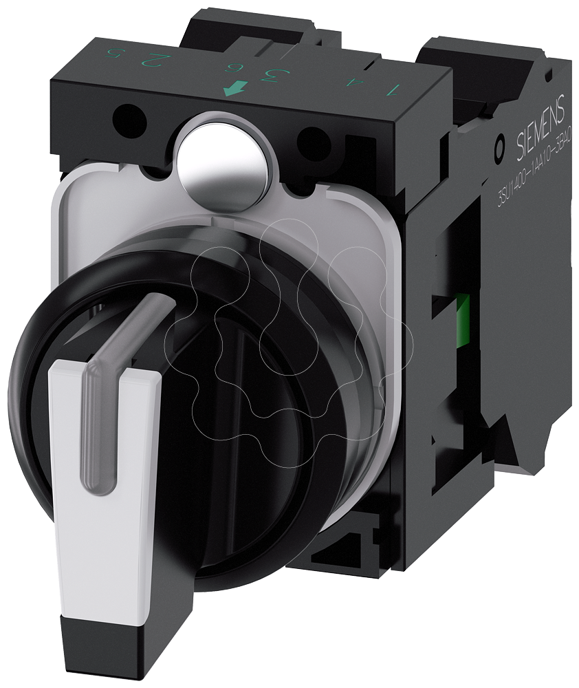 Interruptor com manípulo, iluminável, 22mm, redondo, plástico, preto, branco, 1NA, 1NA