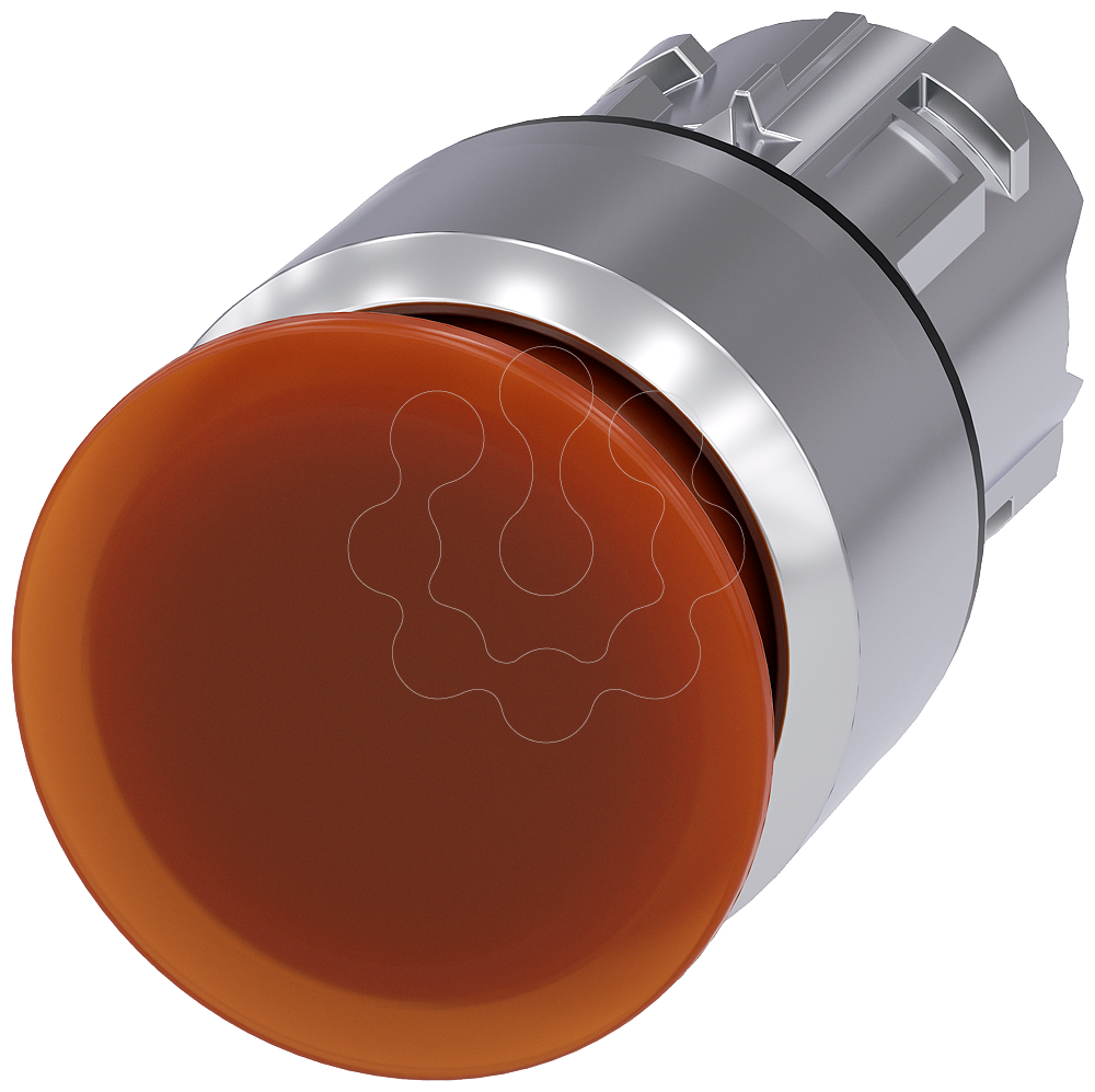 Botão cogumelo iluminado, 22mm, redondo, metal, alto brilho, âmbar, 30mm