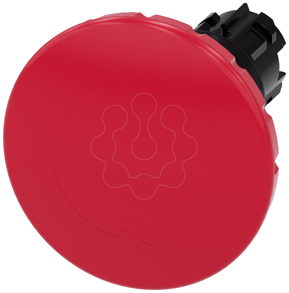 Botão cogumelo de paragem de emergência, 22mm, redondo, plástico, vermelho, 60mm, desencrava por rotação