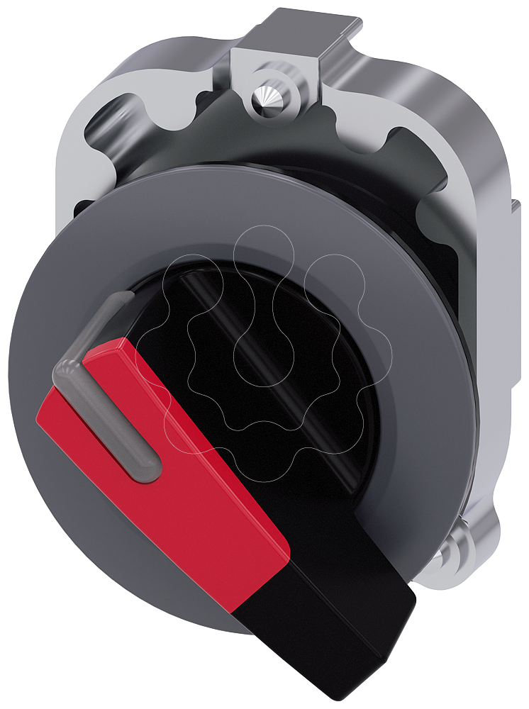 interruptor com manípulo, iluminável, 30 mm, redondo, metal, mate, vermelho, manípulo, comprimento, anel frontal para montagem plana, 2 posições de...