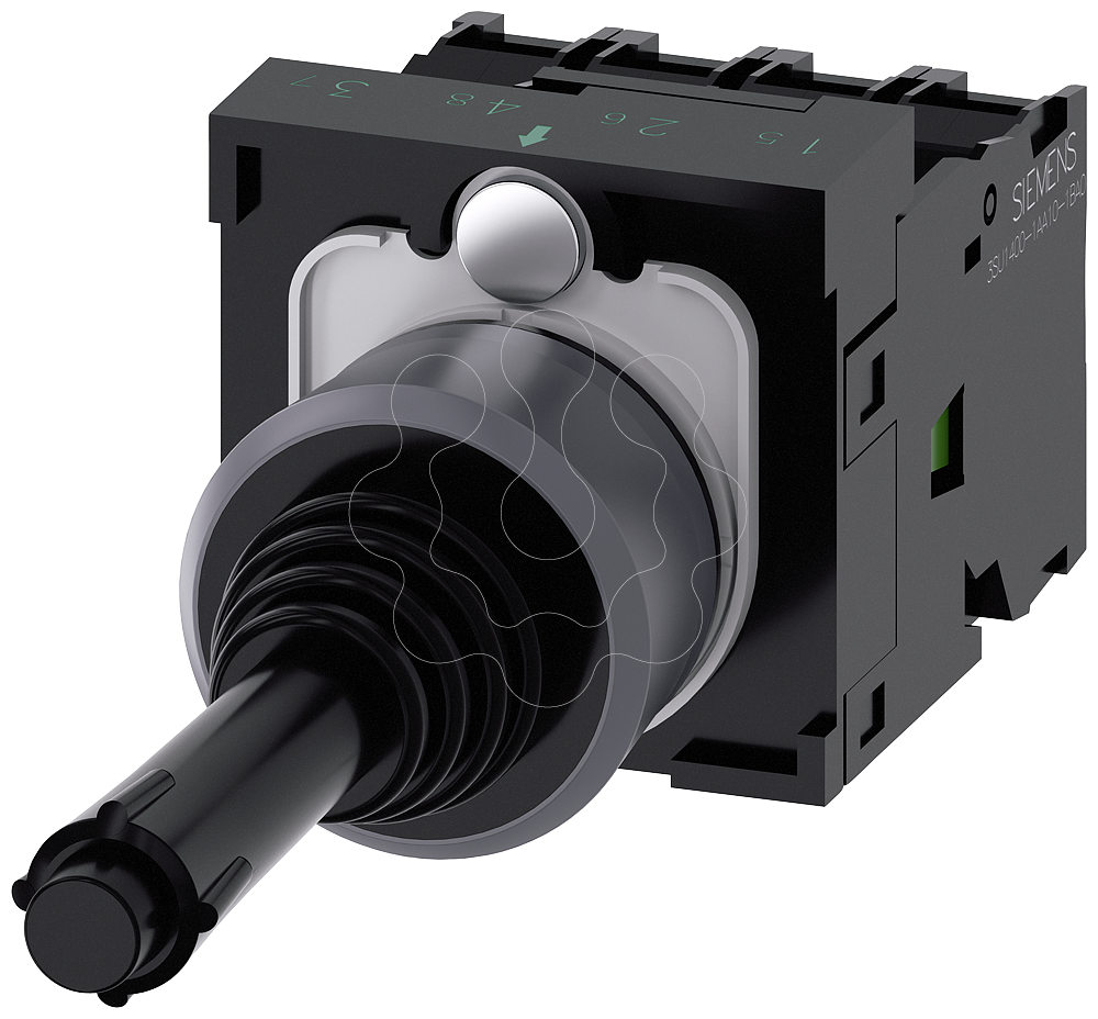 Comutador de barras cruzadas, 22 mm, redondo, plástico com anel frontal metálico, preto, 4 posições de comutação, de encaixe, com travamento mecâni...