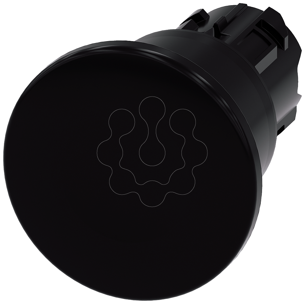 botão tipo cogumelo, 22 mm, redondo, plástico, preto, 40 mm, de encaixe, desbloqueio puxando, com inscrição a laser, inscrição ou símbolo seleção e