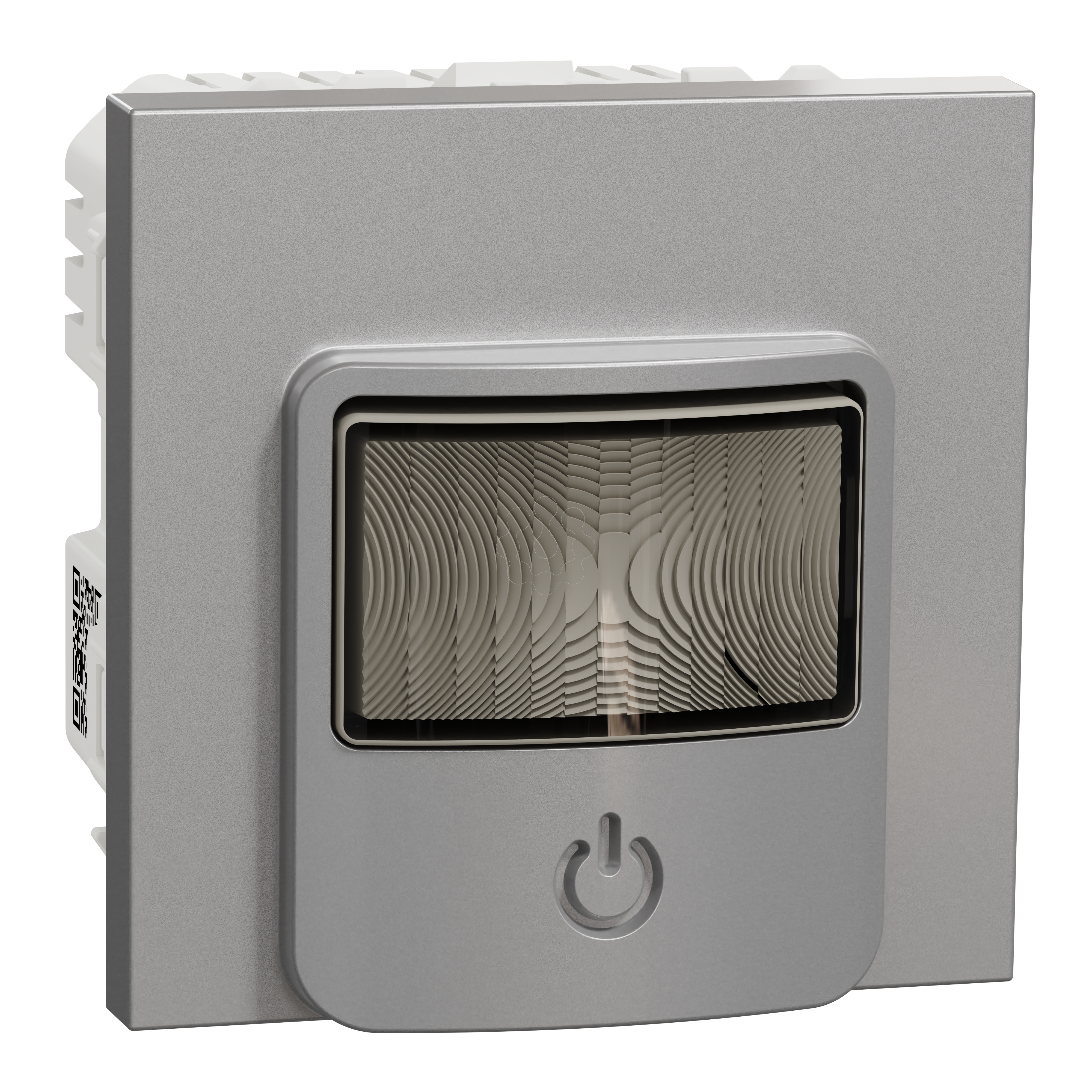Este sensor de movimento incorpora um regulador de luz LED. Funciona como um regulador automático conectado. As configurações são feitas através da app no smartphone. O utilizador pode personalizar o interruptor de acordo com as funções e funcionalidades que necessite no seu smartphone. Suporta cargas como: LED 100VA(RC), 20W(RL) e 200W carga resistiva. O sensor de movimento tem um ângulo de detecção horizontal de 160°. O sensor é de cor alumínio. Conta com todos os requisitos EN e com as aprovações VDE, NEMKO, SEMKO, FIMKO e NF. Inclui funcionalidades como: programação semanal, luz nocturna, funções de acordar e dormir. A função mestre/escravo é possível na cobertura de grandes áreas.