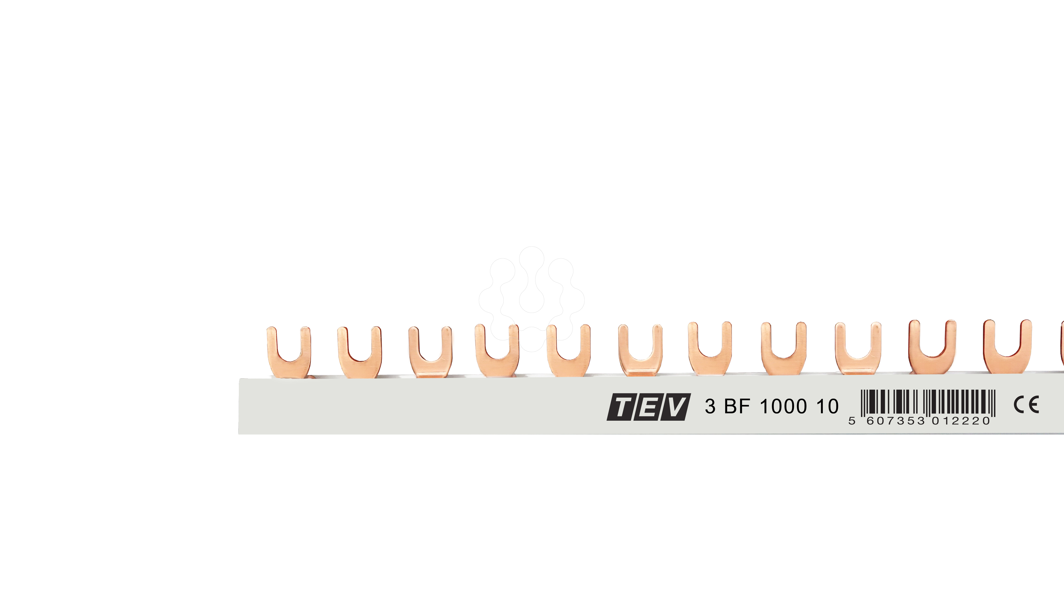 BARR. FORQ. 10 mm² 1000 mm 3P. BARRAMENTO DE FORQUILHA 10mm² 1000mm TRIPOLAR. Em conformidade com a norma EN 61439-1-6 Cobre Eº CU S8/F25 - DIN 1787 Isolamento em plástico auto-extinguível - Ultramid Resistência a curto circuitos <25KA Sem halogéneos
