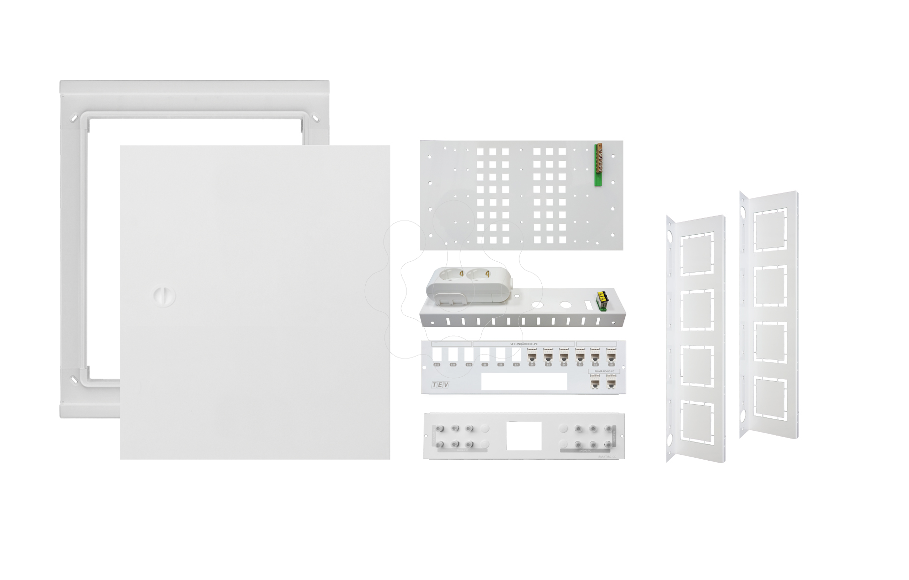 ATI M2 EMB REG P/ SAÍDAS 6PC 6CC 2FO BRC. KIT PAINÉL ATI MEGA M2 PARA MONTAGEM EMBUTIDA COM RÉGUA E COM 6 SAÍDAS PAR COBRE. Em conformidade com as indicações 3.2.2.2 do manual ITED3 e as indicações 3.3.2.2 do manual ITED4 Para montagem de embutir Fabricado em termoplástico Cor: branco RAL 9010 Porta reversível a 180º. Ventilação por convecção natural. Fecho rotativo. Possibilidade de colocar fechadura com chave - ref.MFC Possibilidade de aquisição do fundo ATI para instalação posterior Kits equipados com os RC PC categoria 6, RC CC 2400MHZ e RC FO SC/APC Classe II de isolamento IP40/IK07 Sem halogéneos