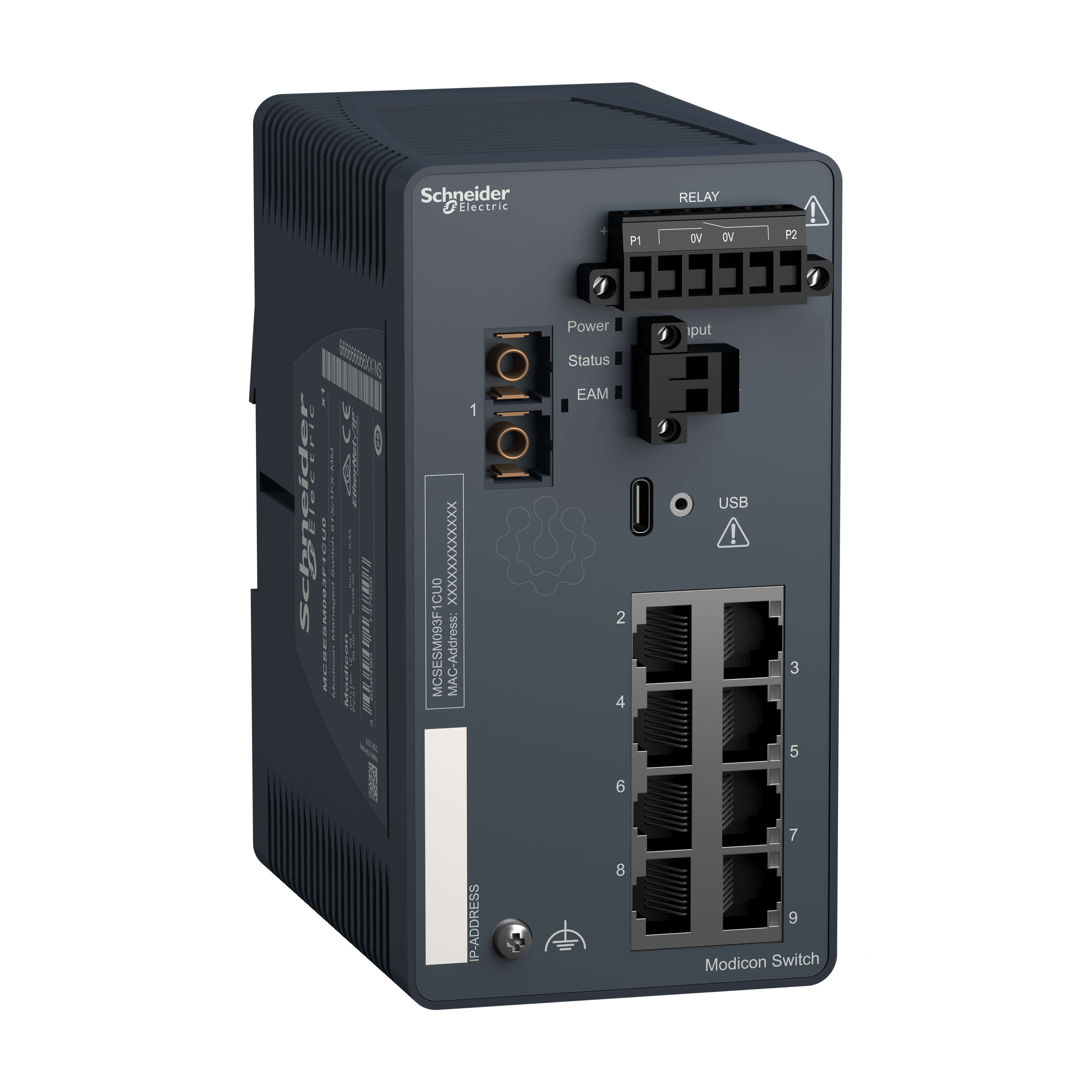 Modicon Managed Switch - 8 portos para cobre + 1 port para fibra óptica multimodo