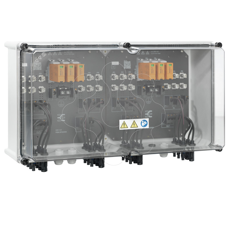 Combiner box (fotovoltaica), 1000 V, 2 MPPT, 3 entradas/3 salidas por MPPT, Con soporte de fusible, Protección contra sobretensiones I/II, WM4C. Combiner box para aplicaciones fotovoltaicas.
