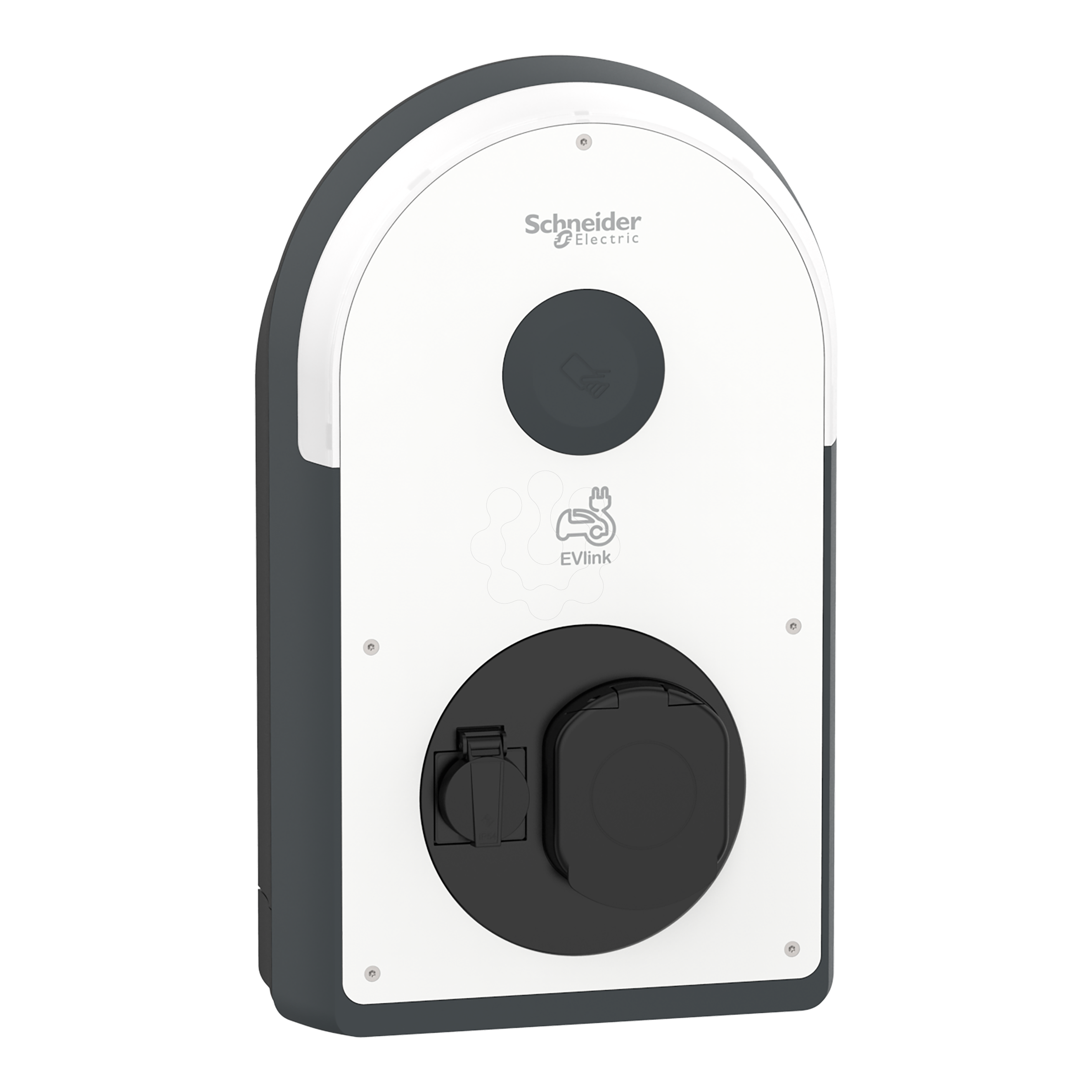 EVlink Pro AC é um carregador que se monta na parede para todos os veículos electricos que cumprem com a IEC61851-1 Também pode ser de assentamento ao solo se fixo em pedestal ou integrado num kit de armário. Ambos devem ser encomendados separadamente. Pode ser instalado tanto no interior como no exterior. O índice de protecção IP é IP55. O grau de protecção IK é IK10. A temperatura de funcionamento está entre -30°C e 50°C. A temperatura de armazenamento está entre -40°C e 80°C. O tipo de saída é uma tomada T2 com obturador (T2S) com tomada T, fixada à face frontal do posto. Todos os contactos da tomada T2S são revestidos a prata para evitar o sobreaquecimento. A potência nominal de saída é de 7,4kW com a tomada T2S e 2,3kW com a tomada doméstica TE. É fornecido em monofásico (1P+N). A corrente nominal de carga é de 32A de 220V a 240VAC com uma frequência de 50Hz a 60Hz com tomada T2S. A corrente nominal de carga é de 10A de 220V a 240VAC com uma frequência de 50Hz a 60Hz com tomada TE. Pode ser utilizado com um sistema de ligação à terra TT, TN-S, TN-C-S ou IT. O posto de carregamento é fácil de instalar e configurar. É recomendado tanto em casa como em frotas, na estrada ou no trabalho. As dimensões são (largura) 317 mm x (altura) 529 mm x (profundidade) 158 mm. O peso do produto é de 7,2 kg. A cor é cinzento escuro (RAL 7016). Incorpora uma protecção integrada de corrente contínua residual com um dispositivo de detecção de corrente contínua residual de 6 mA (RDC-DD) e um dispositivo de corrente residual de 30 mA (RCD) tipo A-Si. Um auxiliar de disparo de subtensão MNx também está integrado no posto de carregamento por razões de segurança. Além disso, é necessário cumprir os requisitos de EV Ready. Um contador de energia MID com uma classe de precisão de 1 também está integrado no posto de carregamento. O posto de carregamento pode ser alimentado por cabo a partir da parte de trás, superior ou inferior do mesmo. Para carregar um veículo eléctrico, o controlo de acesso é feito por autenticação do utilizador através de um cartão RFID ou NFC. Mas o posto de carregamento também pode ser utilizado com acesso livre. O início do carregamento pode ser atrasado. Durante o carregamento, a energia pode ser limitada assegurando a continuidade de serviço e optimiza o tempo de carga de todos os postos de carregamento com base no mesmo fornecimento de energia. Tem 2 portas Ethernet RJ45 para ligação LAN. Os parâmetros são configurados através da aplicação eSetup via Bluetooth ou EcoStruxure EV Charging Expert. O posto de carregamento pode ser gerido de forma independente ou em arquitectura em grupo. O protocolo de comunicação OCCP 1.6 é utilizado para se ligar ao dispositivo de monitorização. Os serviços disponíveis são registos de carga detalhados, capacidades de diagnóstico e gestão de carga. O posto de carregamento é certificado CE e EV Ready.