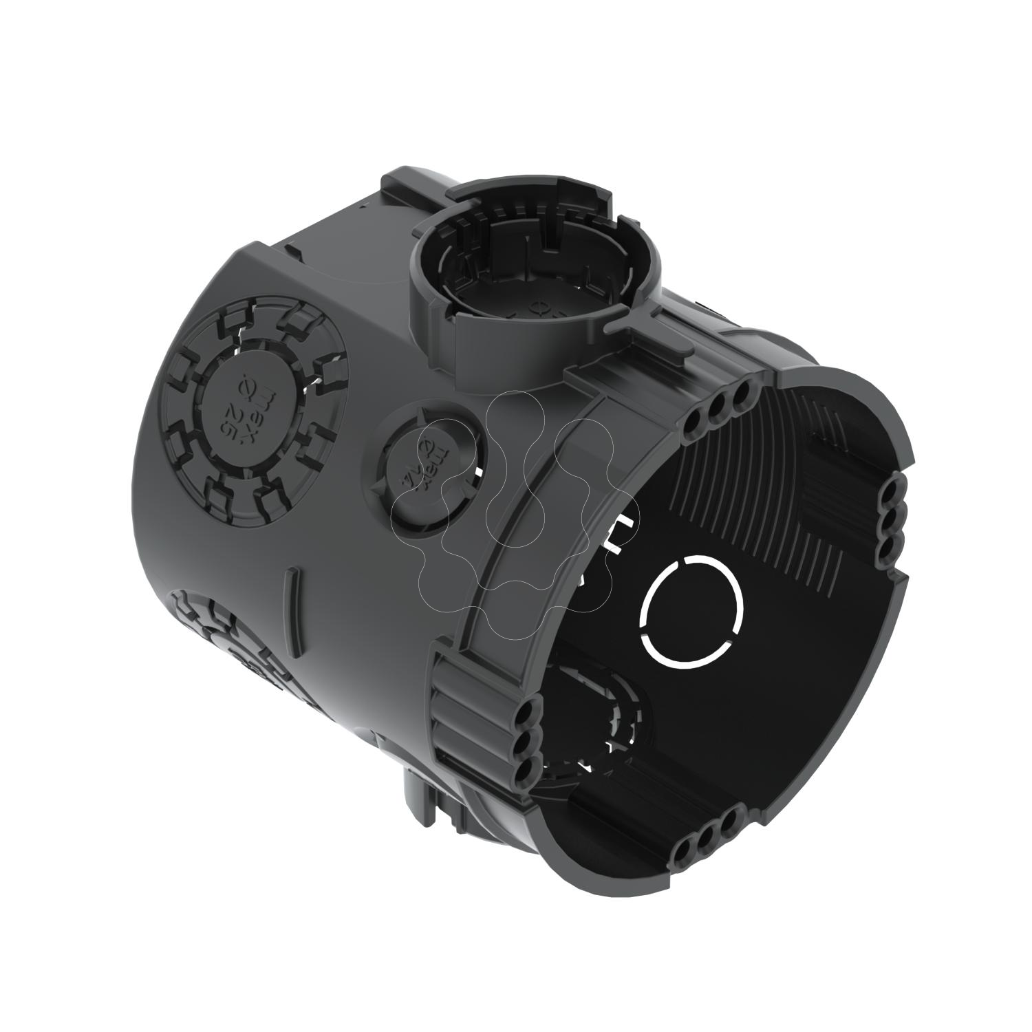 Caixa de aparelhagem de encastrar para utilização em alvenaria com uma profundidade de instalação de pelo menos 66 mm. • 4 x 3 cúpulas de parafusos • Uniões de ligação acopláveis em ambos os lados com fecho de baioneta • 6 entradas de tubos combinadas até Ø 20 e 25 mm • 2 entradas até Ø 20 mm • 2 entradas até Ø 14 mm • 1 entrada até Ø 20 mm na base