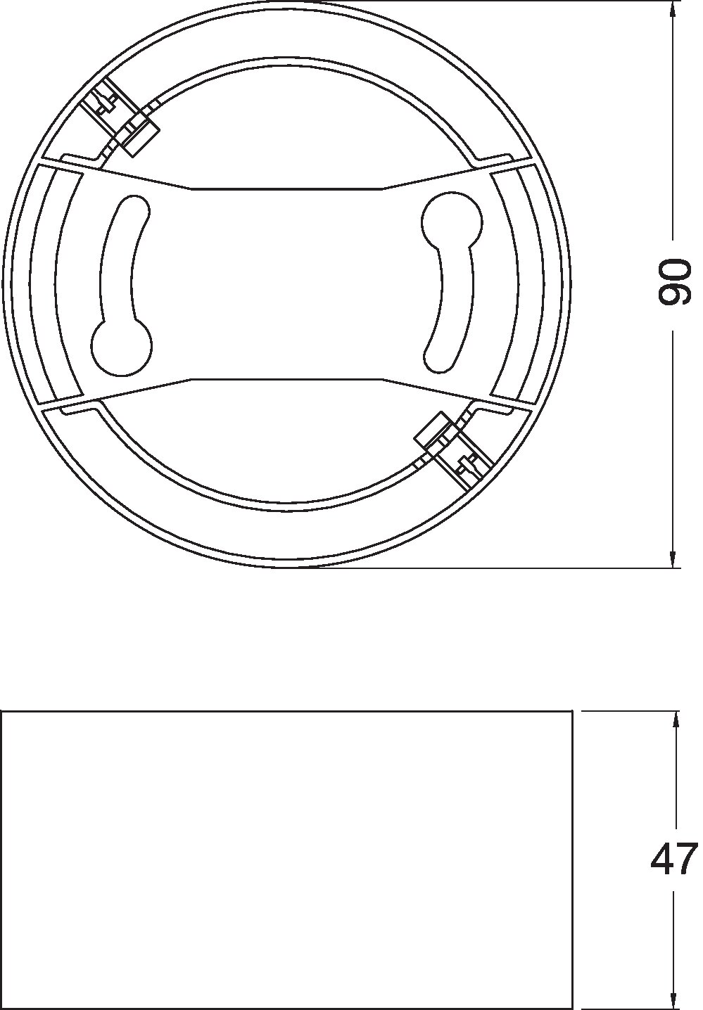 DOWNLIGHT IP44 FRAME DN 90 WT. Moldura de instalação saliente para Downlight IP44. Características do Produto: Estojo em policarbonato resistente. Acessórios de montagem incluídos. Vantagens do Produto: Facilmente instável. Áreas de Aplicação: Substituição direta para luminárias com lâmpadas fluorescentes compactas. Iluminação em geral. Áreas públicas. Escadarias. Corredores. Lojas. Casas de banho.. Moldura de instalação saliente para Downlight IP44 | Estojo em policarbonato resistente | Altura (incl.luminárias cilind.): 47 mm | Garantia: 2 anos